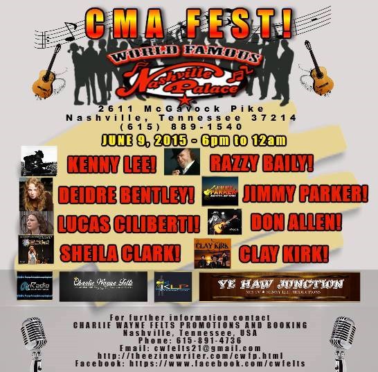 Nancy’s note: this is just a collection of posts & info for some of my Nashville singer and songwriter friends about their gigs in town during CMA Fest and CMA Week and news about CMA Fest –In no particular fashion, in no particular order…just as I see them, mostly on Facebook, or on Twitter…